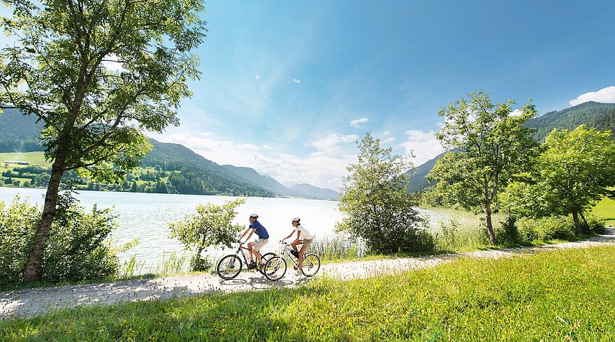 Direkt vom Ufer des Weissensees führen Mountainbikestrecken mit 160 km Länge und alle Schwierigkeitsgraden in die
