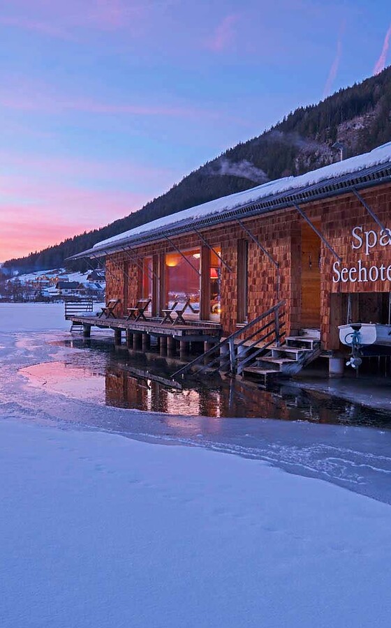Direkt über dem Wasser. Am See. Umgeben vom Naturpark und nichts als Ruhe. Das ist unsere einzigartige See-Spa. Hier, im Bootshaus, finden Sie nicht nur ein Kräuterdampfbad, eine Finnische Sauna oder einen sonnendurchfluteten Panorama-Ruheraum, sondern auch das „Juwel des Hauses“, wie sie viele nennen: die schönste See-Sauna Kärntens. Noch näher an der Natur geht kaum!