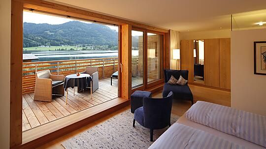 Doppel-, Einzelzimmer oder Suiten – egal wonach Sie suchen, hier in unserem Wellnesshotel in Kärnten am See findet jeder seine Lieblingsschlafstätte. Immer dabei: der Blick auf den See!
