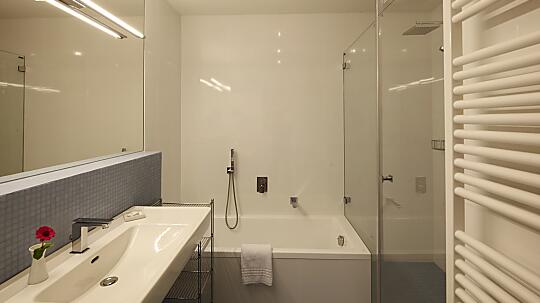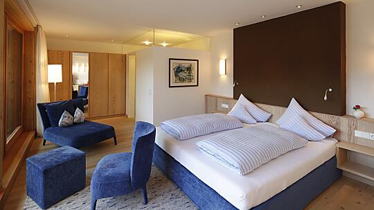 Großzügige Doppelzimmer mit Schlaf- und Wohnraum optisch getrennt, Badewanne oder Dusche/WC, Balkon mit Seeblick, ausgestattet mit allen Annehmlichkeiten wir kuschelige...
