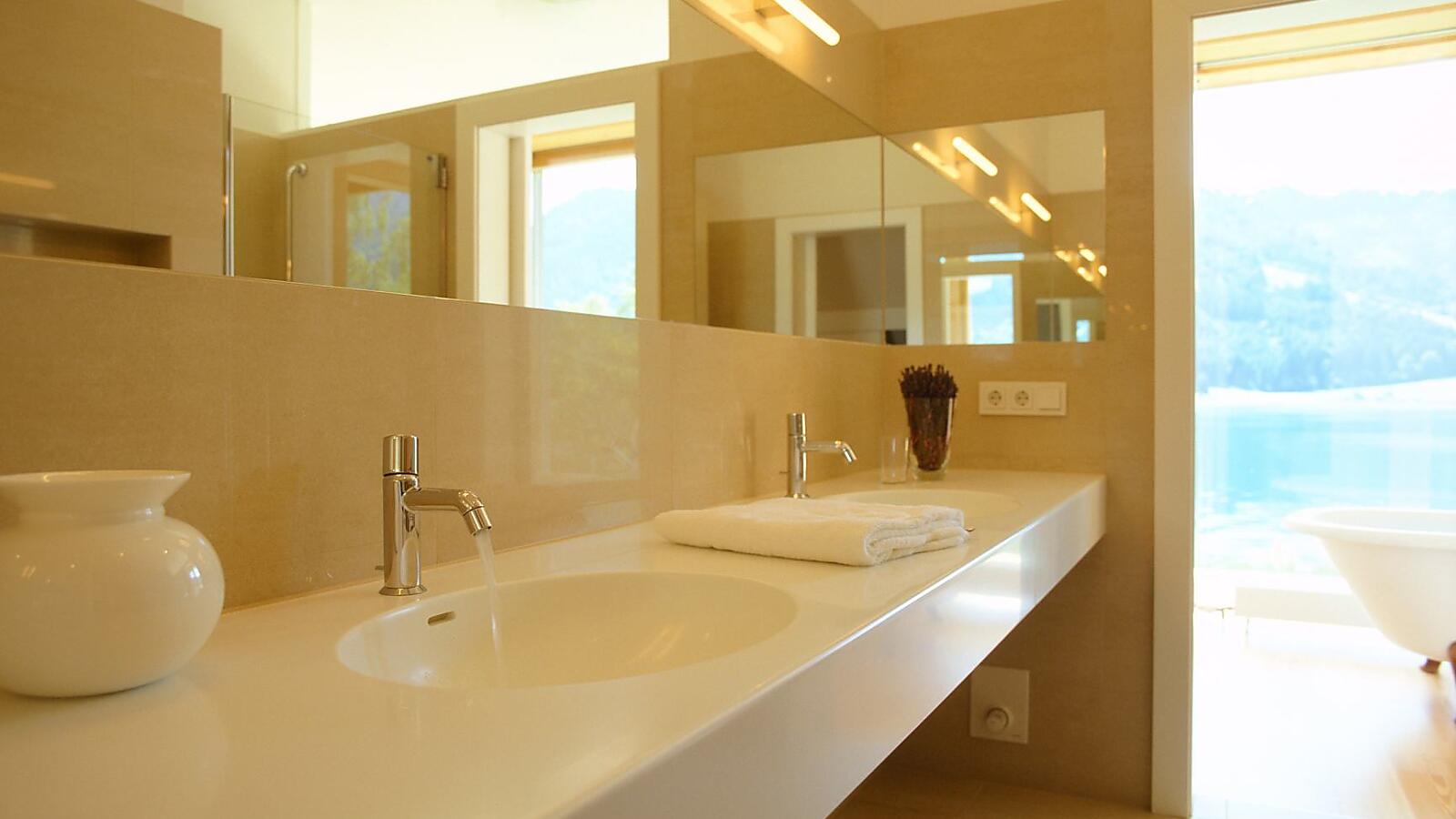 Liebevoll und elegant mit natürlichen Materialien eingerichtet – ladet herzlich zum Wohlfühlen ein. Ein Doppelzimmer mit Dusche/WC,TV. Ein Doppelzimmer mit Dusche und extra WC, TV. Ein kleines Einzelzimmer. Ausgestattet mit allen Annehmlichkeiten wie kuscheliger Bademantel, Saunatuch, Fön, WiFi , Radio, Telefon, Safe. Highlight der Wohnung ist die freistehende Badewanne mit dem einmaligen Panoramablick über den See. Wohn-Essraum mit durchgehender Fensterfront, offenem Kamin, TV. Offene Küche mit E-Herd, Backofen, Mikrowelle, Kühlschrank, Geschirrspüler, Toaster, Nespresso. Die Suite ist mit Naturholzböden ausgestattet. Südloggia mit atemberaubender Aussicht auf den See und die Berge.